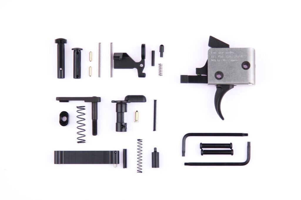 CMC Triggers Complete lower receiver parts kit for AR-15. A great addition to your AR15 build. From amateur gun builder to seasoned expert gun smith, this lower parts kit is for you. NOTE: Grip NOT included. Kit Contains 3.5lb Single Stage Trigger 1.Bolt Catch 2. Bolt Catch Plunger 3. Bolt Catch Spring 4. Bolt Catch Roll Pin 5. Mag Release 6. Mag Release Button 7. Mag Release Spring 8. Buffer Retainer Spring 9. Safety 10. Buffer Retainer 11. Safety Detent Spring 12. Safety Detent 13. Trigger Guard 14. Trigger Guard Roll Pin 15. Takedown Detent Springs 16. Takedown Detents 17. Takedown Pins Meets or Exceeds Mil Spec Specifications for CMC Triggers AR Lower Assembly Trigger Kit: Manufacturer: CMC Triggers Color: Black Condition: New Package Contents: CMC Triggers AR Lower Assembly Trigger Kit