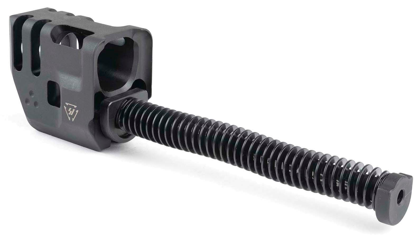 Blend with your target with this legal and functional Strike Industries G5 Mass Driver Compensator that vastly reduces your felt recoil. Strike Industries designed these Reduction Parts to be the closest thing a compensator can get to a space travel concept, as the name suggests. With the Strike Industries G5 Mass Driver Compensator, a reciprocating mass and increased inertial mass are counteracted by the expanding gasses from your round after it is discharged, greatly diminishing your felt recoil. However, it is wise to remember that recoil is still a reality, and adding a compensator barrel can decrease reliable cycling on a regular handgun. So, to mitigate your weapon’s recoil, you need to properly install the compensator first. Thankfully, this threaded compensator has a widened bore to prevent your stray shots from causing damage. You can use this device in conjunction with a Glock aftermarket threaded barrel to get the “aftermarket” look, but we recommend pairing this compensator with a non-threaded barrel instead. This device even has a 2.5mm relief cut at the top rear to prevent damage to the face of the slide. 50 state legal, this Strike Industries G5 Mass Driver Compensator is a simple way to reduce your recoil to a bearable level. Your recoil is what matters most when you’re tinkering with your weapon. Stay comfortable and nimble with the Strike Industries G5 Mass Driver Compensator for Glock. Specifications for Strike Industries G5 Mass Driver Compensator: Manufacturer: Strike Industries Color: Black Cartridge: 9mm Luger Finish: QPQ Gun Make: Glock Model Generation: 5 Inner Diameter: 0.5 in Length: 35.85 mm Weight: 3.2 oz Condition: New Features of Strike Industries G5 Mass Driver Compensator No threaded barrel needed (but can be used) Eliminates the need for threaded barrels. 50 State Legal Widened bore to reduce baffle strikes and keyholing rounds 2.5mm relief cut at the top rear of comp to reduce “lipping” and damage to the face of the slide No permanent modification of weapon required Blended, no snag profile Matches with width of the slide, it can be used with open holsters, no special holster needed Counter recoil design, as the slide moves back the comp moves forward to reduce felt recoil Contours with slide dimensions to be compatible with most openbottom holsters Precision CNC machined Threaded Barrels: they recommend use with nonthreaded barrels if possible but yes, the Mass Driver Comp is compatible with most GLOCK aftermarket threaded barrels. We’ve tested with majority of the popular brands on the market such as: AlphaWolf, Battle Arms Development, Bear Creek Arsenal, Brownells, CMC Triggers, Faxon Firearms, Fortis Manufacturing, Grey Ghost Precision, Killer Innovations, LANTAC, Lone Wolf Distributors, Next Level Armament, Shadow Systems, Suarez International, Tactical Kinetics, ZEV Technologies. Package Contents: Strike Industries G5 Mass Driver Compensator x1 Comp main body x1 Recoil spring x1 Guide rod x1 Guide rod fitment washer x1 Guide rod head x1 Internal spring x1 Guide rod plug (GEN4 only) x1 Warning card